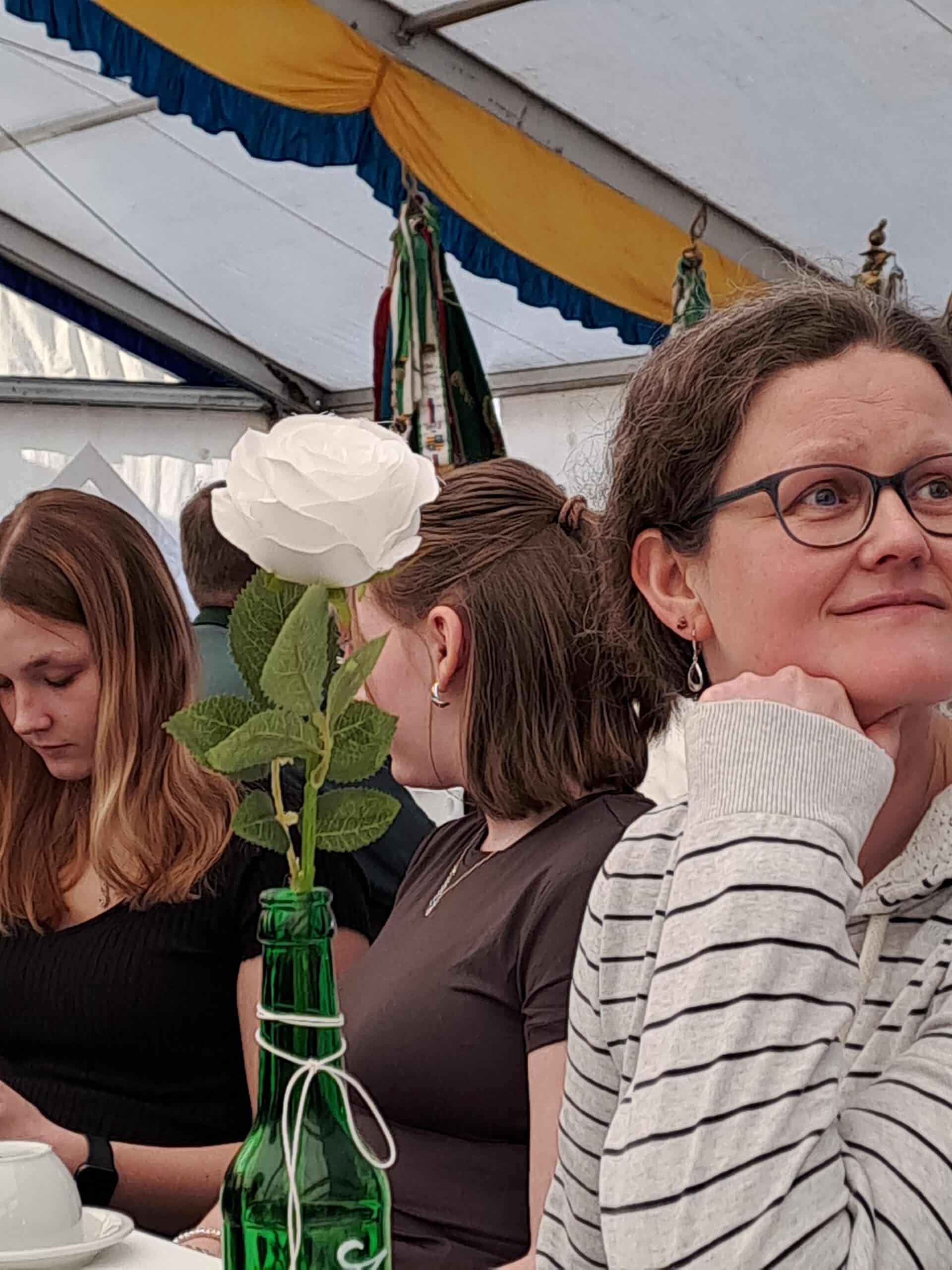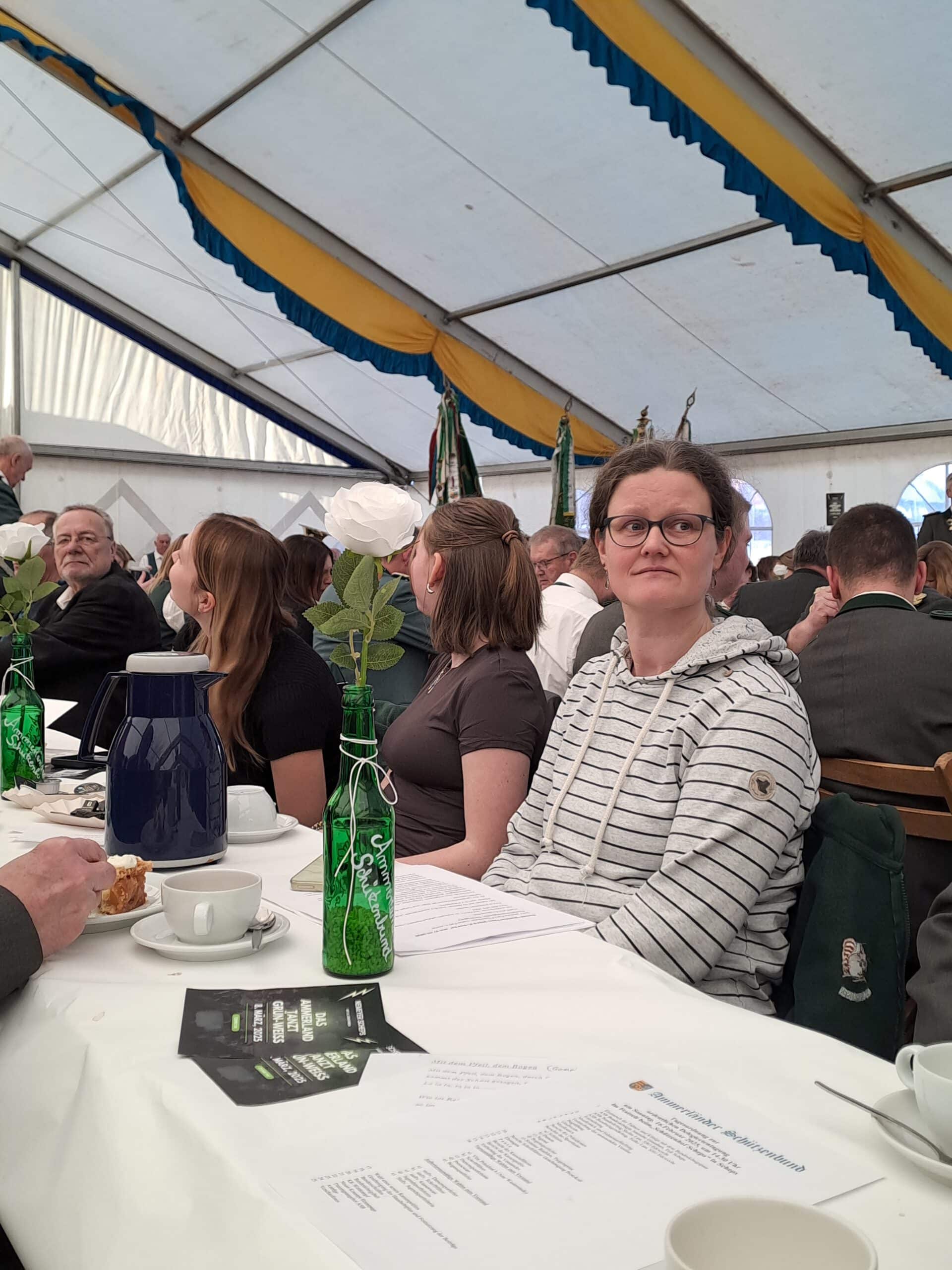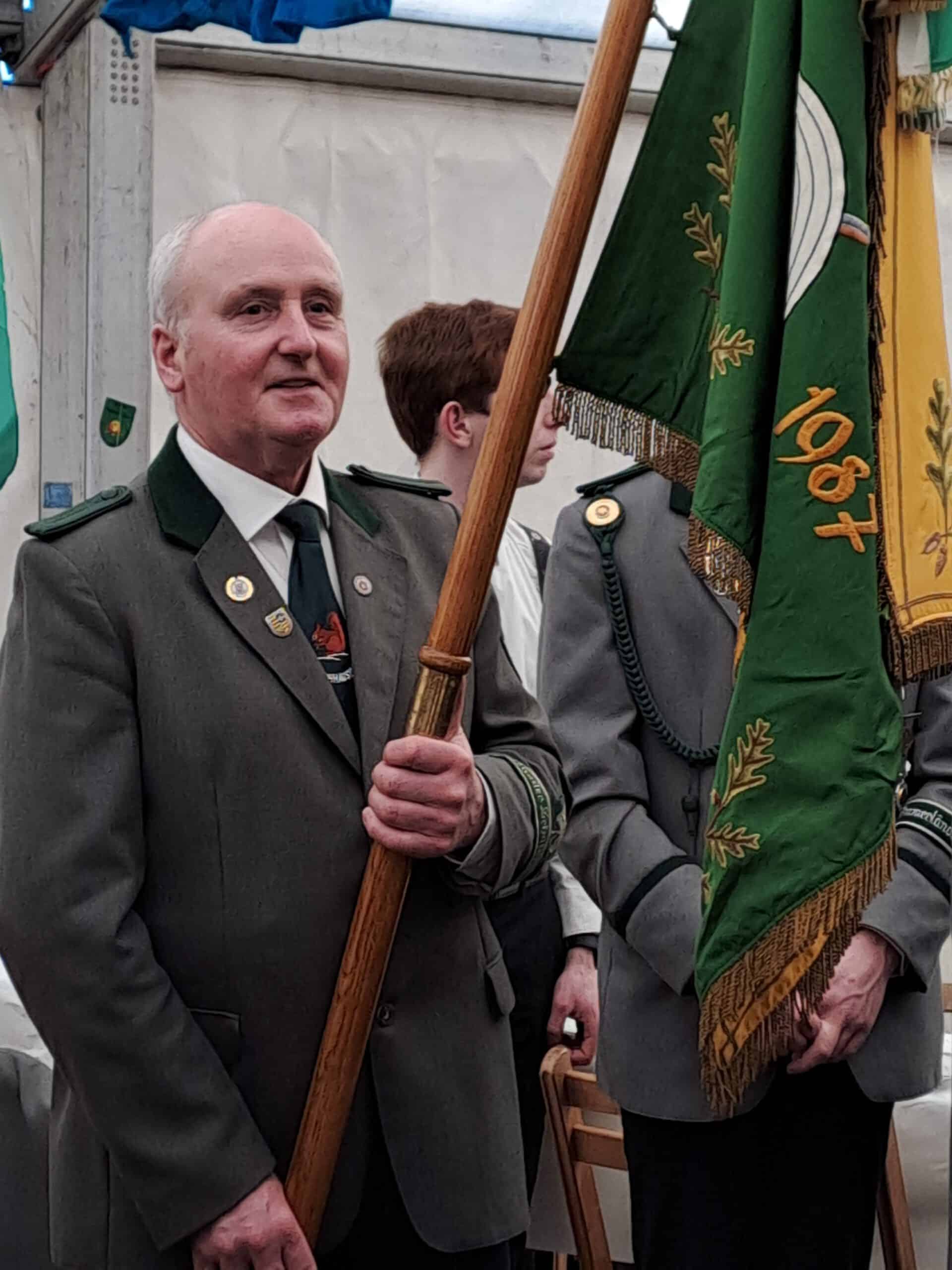 Nach dem Einmarsch der Fahnen und Könige mit dem Bundeskönigspaar wurde die Totenehrung begangen. Danach folgte ein Musikstück mit der Fahnenaufstellung.